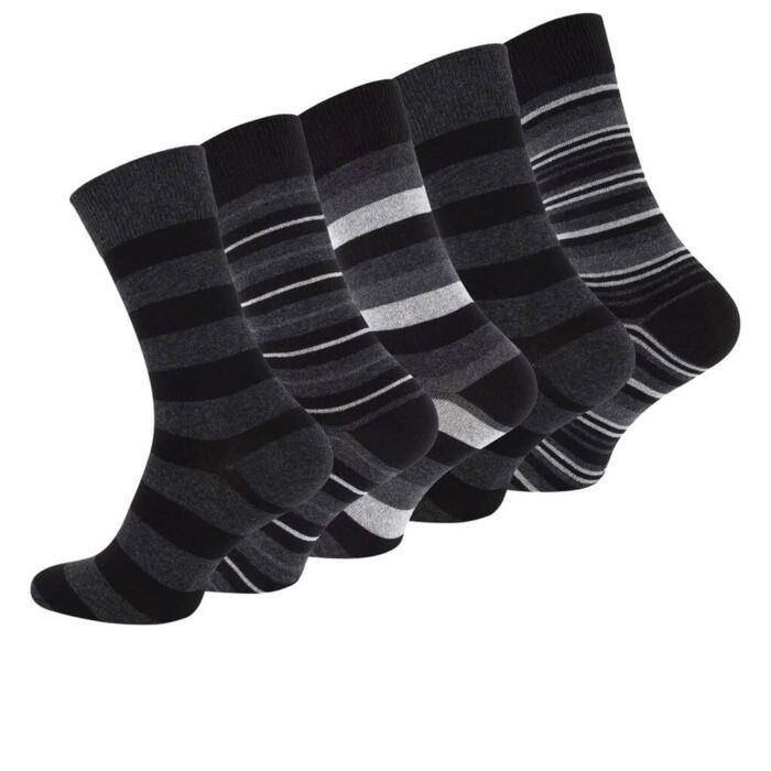 Tilføj et strejf af personlighed til din hverdagsgarderobe med disse herrestrømper i bomuld med striber – et must for enhver herre, der sætter pris på både komfort og stil. Det tidløse design kombineret med friske farvekombinationer og mønstrede herrestrømper, inklusiv de klassiske sorte nuancer, gør dem perfekte til både arbejde og fritid. Striberne skaber et elegant og moderne udtryk, som passer til alt fra jakkesæt til jeans – og sikrer, at dine fødder skiller sig positivt ud, uanset om du vælger et sort look eller et mere farverigt design.